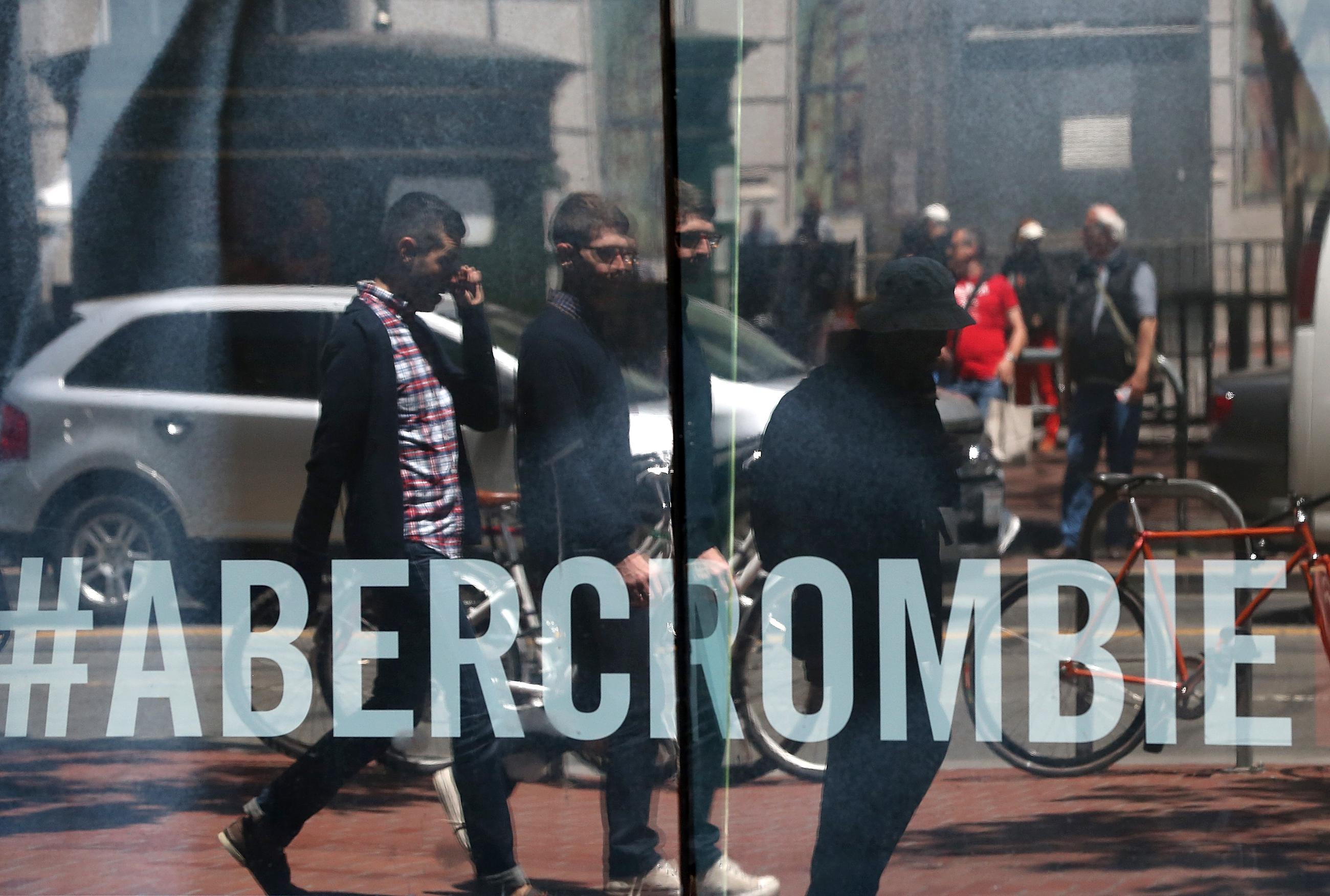 SAN FRANCISCO, CA - MAY 24: Pedestrians are reflected in the window of an Abercrombie and Fitch store on May 24, 2013 in San Francisco, Calif.