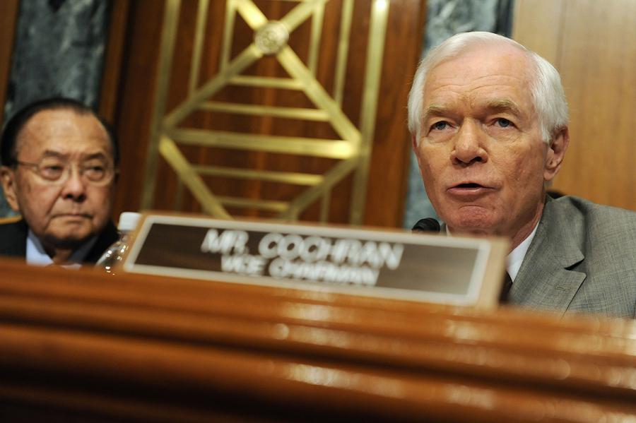 WASHINGTON - JUNE 09: Committee Chairman U.S. Senator Daniel Inouye (D-HI) (L) and Vice Chairman Senator Thad Cochran (R-MS) (R) discuss the proposed 2010 Defense Department budget at a hearing of the Defense Subcommittee of the Senate Appropriations Committee on Capitol Hill on June 9, 2009 in Washington, DC. U.S. Defense Secretary Robert Gates and U.S. Navy Admiral Michael Mullen, Chairman of the Joint Chiefs of Staff, said that the actions taken there in the next year and a half will show if progress is being made in Afghanistan.