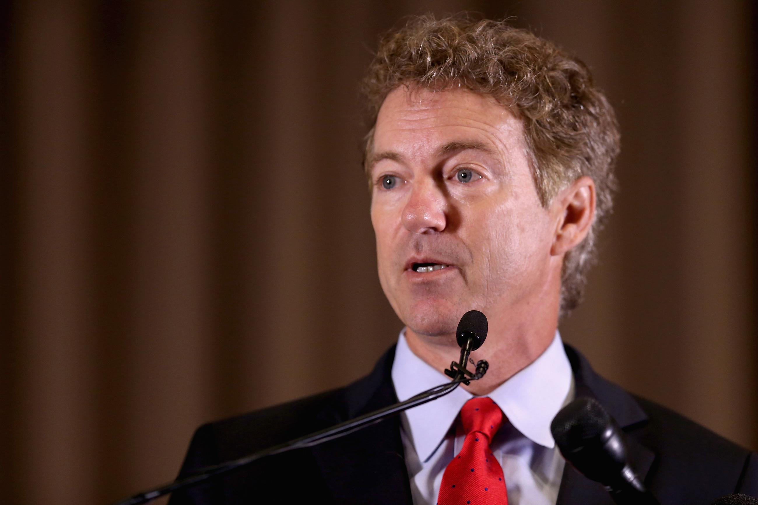 Republican presidential candidate Sen. Rand Paul (R-KY) addresses the Baltimore county Republican Party's annual Lincoln/Reagan Dinner at Martin's West June 9, 2015 in Baltimore, Maryland.