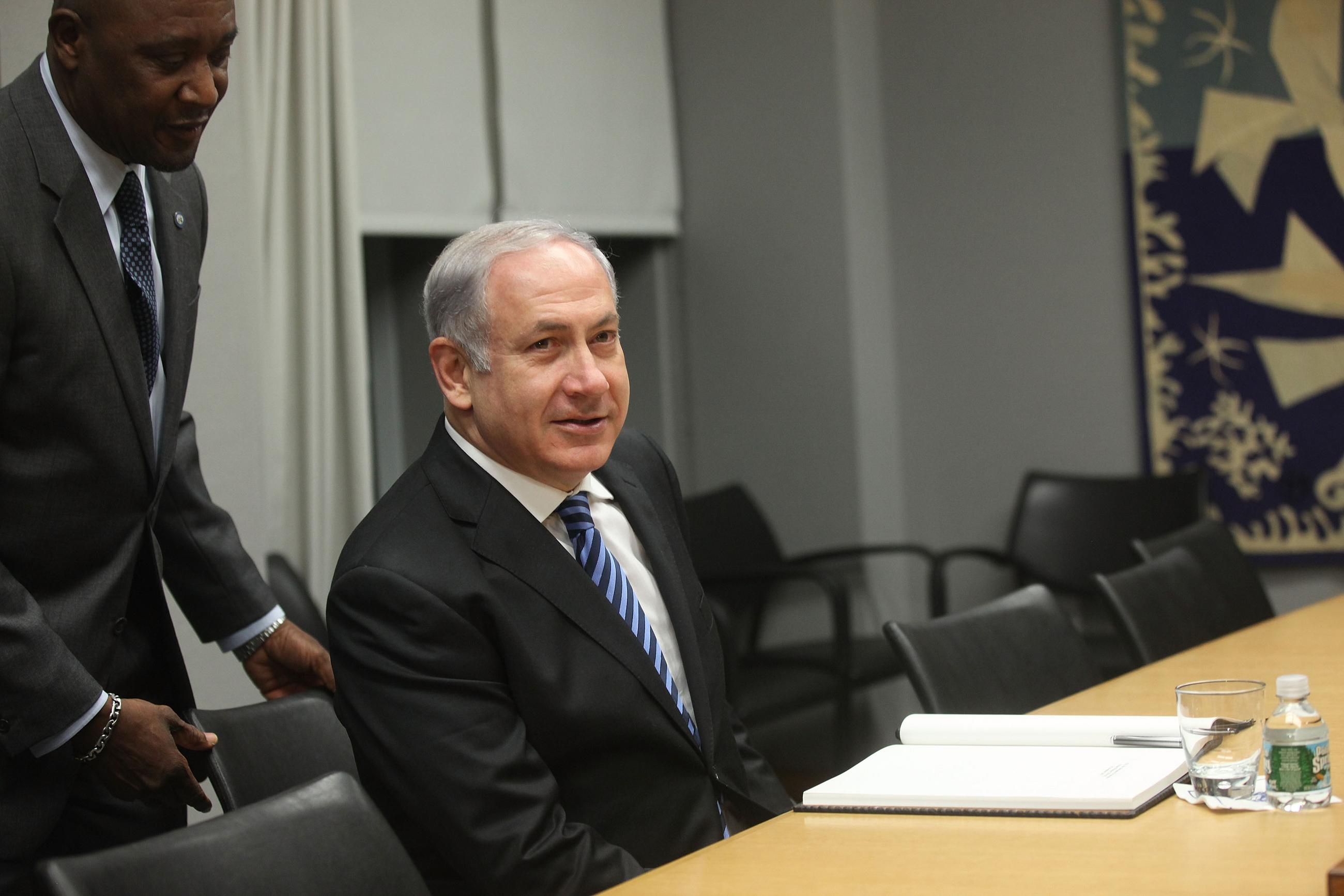 NEW YORK, NOVEMBER 08: Israeli Prime Minister Benjamin Netanyahu looks on while meeting with United Nations Secretary-General Ban Ki-moon at U.N. headquarters November 8, 2010 in New York City. Israeli media reported that Netanyahu will announce the Israeli withdrawal from Ghajar, a village straddling the Lebanese-Israeli border.
