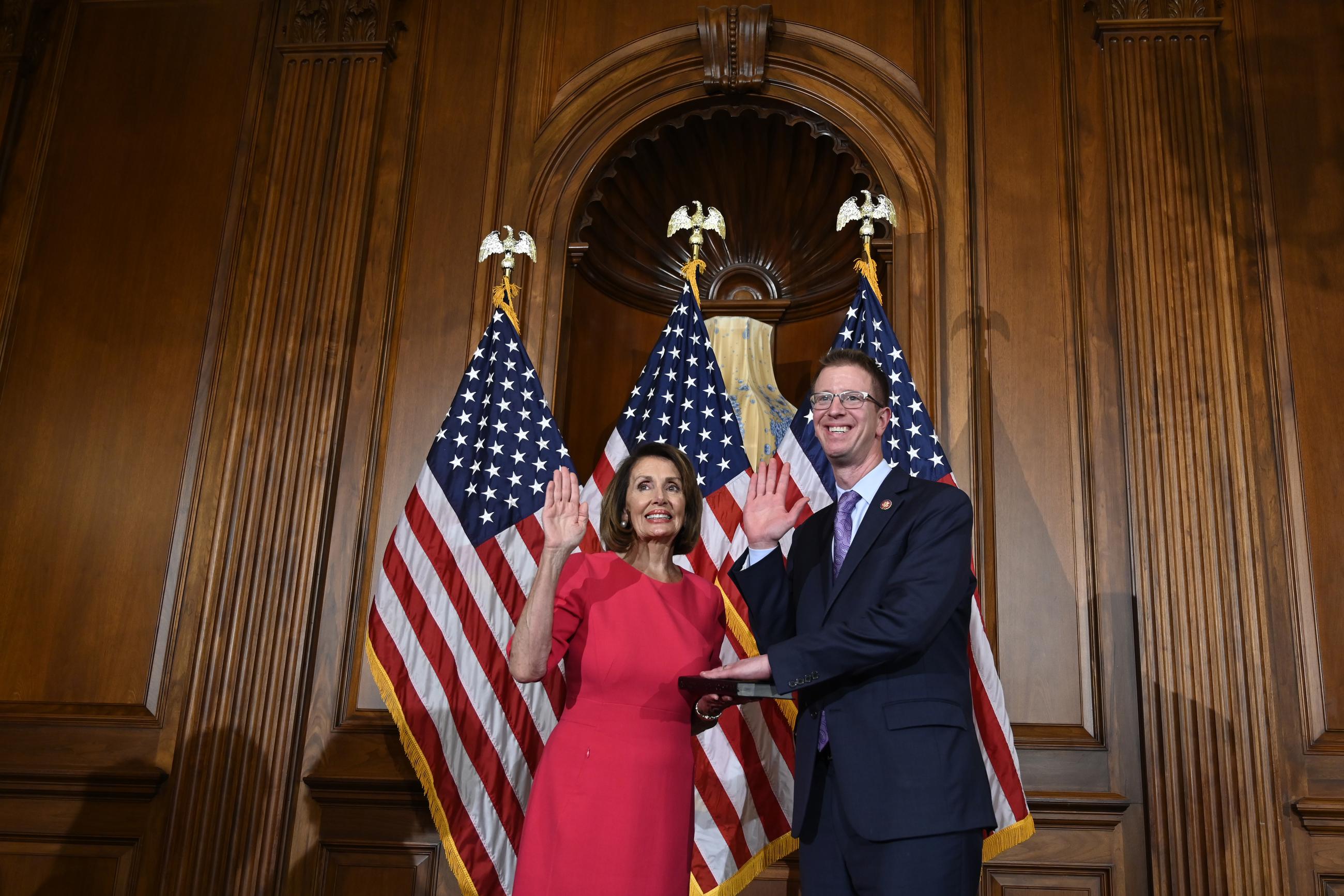 House Speaker Nancy Pelosi and Rep. Derek Kilmer at a swearing-in ceremony on Jan. 3