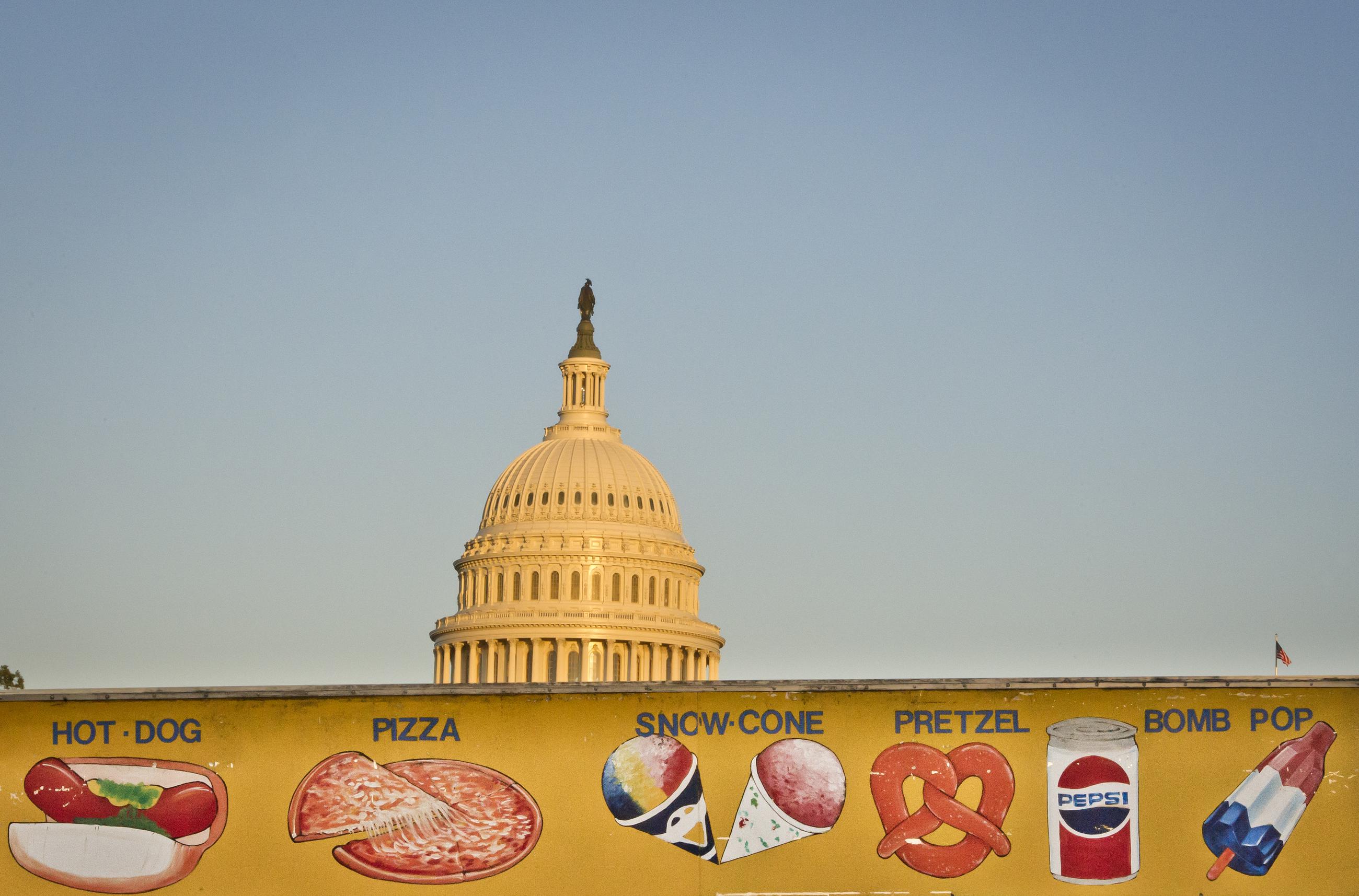 The US Congress building is seen behind the top of a food truck in Washington, DC, October 14, 2013.