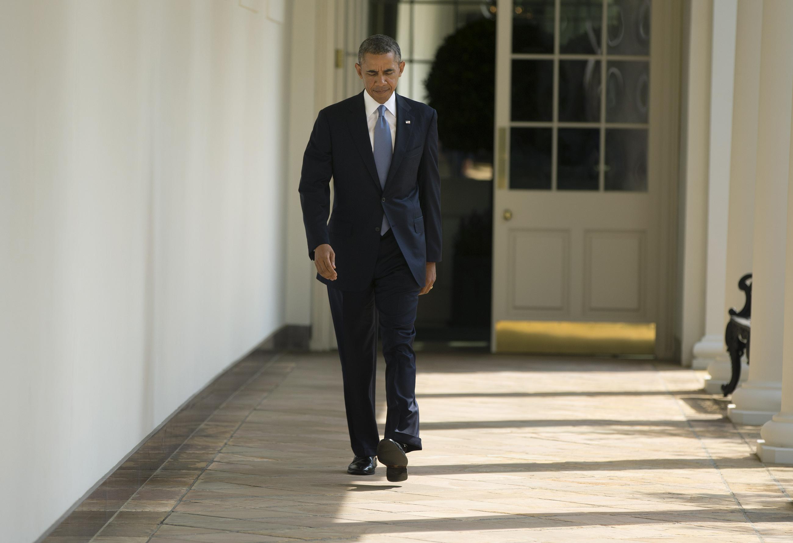 President Barack Obama walks along the West Wing Colonnade towards the Oval Office, Sept. 10, 2013.