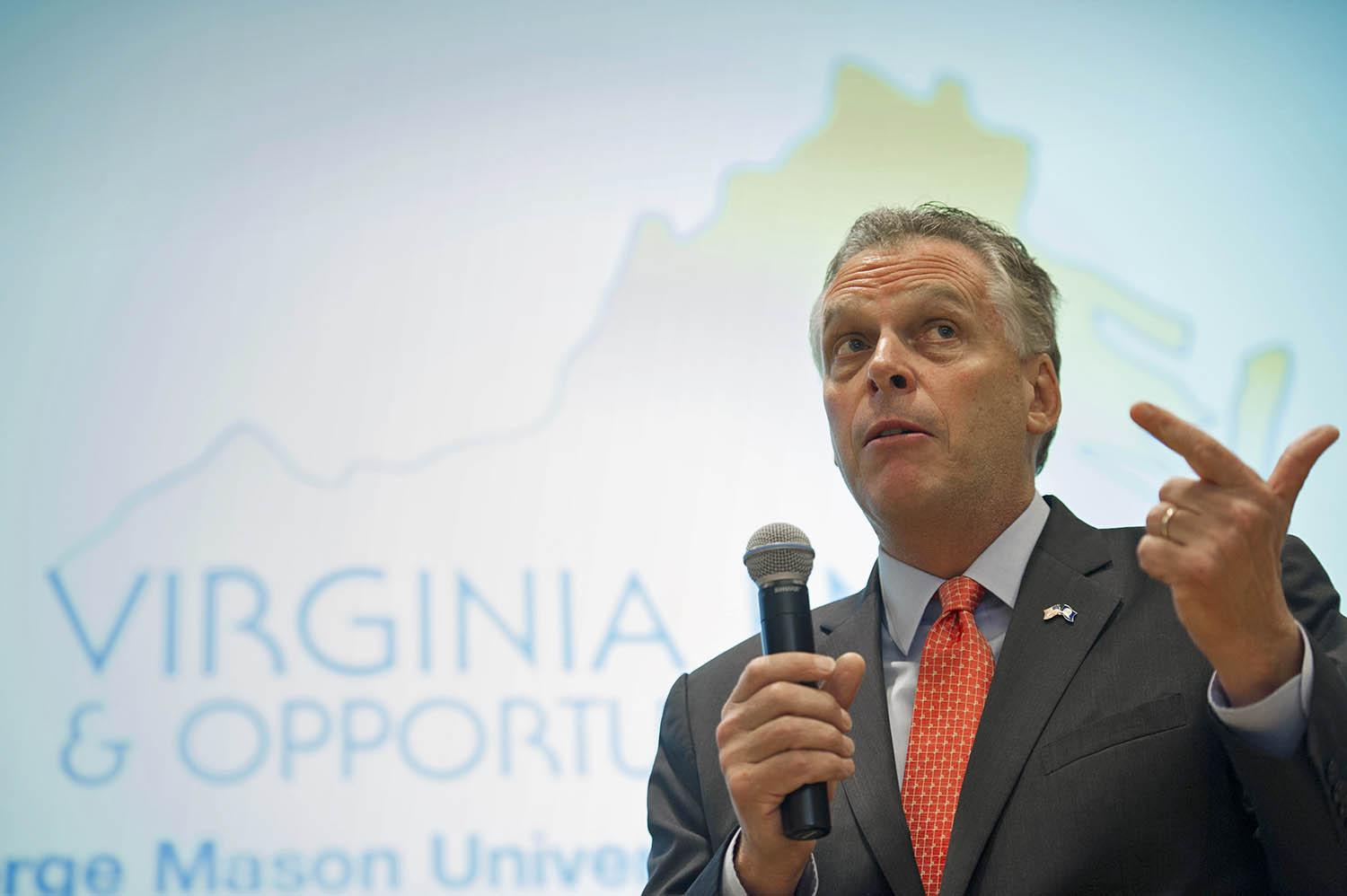 Virginia Democratic gubernatorial candidate Terry McAuliffe addresses the Virginia Energy and Opportunity Forum in Arlington, Va., Thursday, Aug. 29, 2013. McAuliffe used a forum on energy to attack his Republican rival for Virginia governor's positions on family law and other social issues.