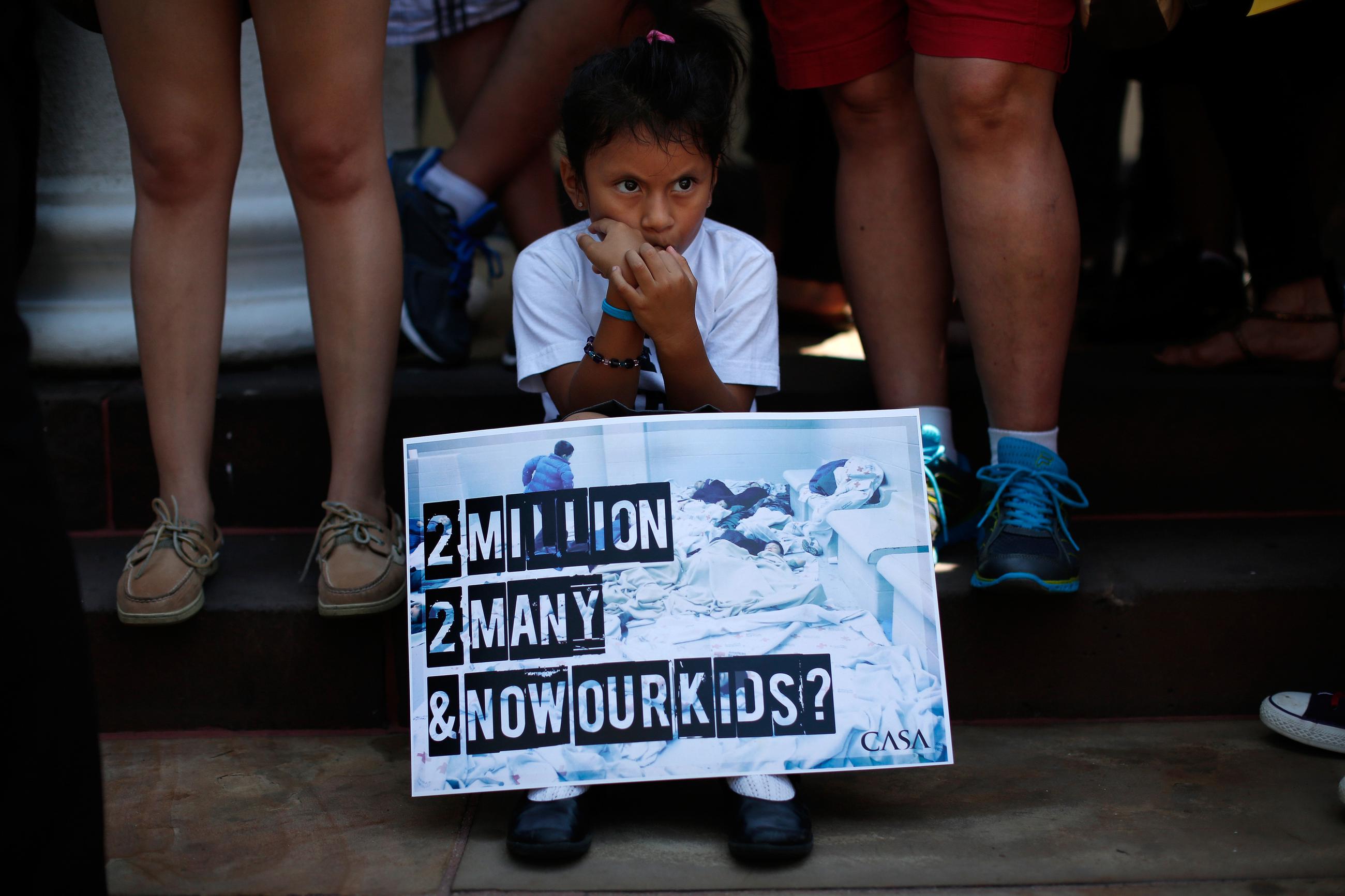 Four-year-old Heather Pia Ledezma, who is from Mexico, joins immigration reform protesters at a rally July 7 in Washington, D.C. Participants condemned President Obama's response to the border crisis.