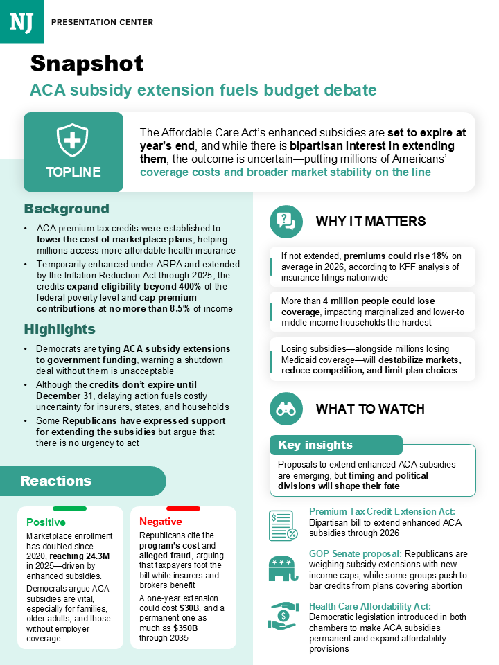The Affordable Care Act’s enhanced premium tax credits are set to expire at the end of the year, but that doesn’t mean the negotiations to extend them are done.